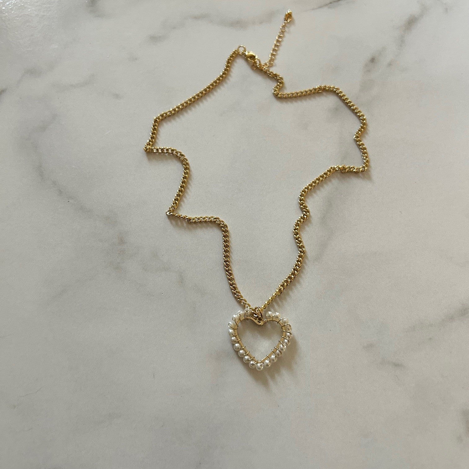 ✧ 14k gold-plated pearl heart 27mmx27mm